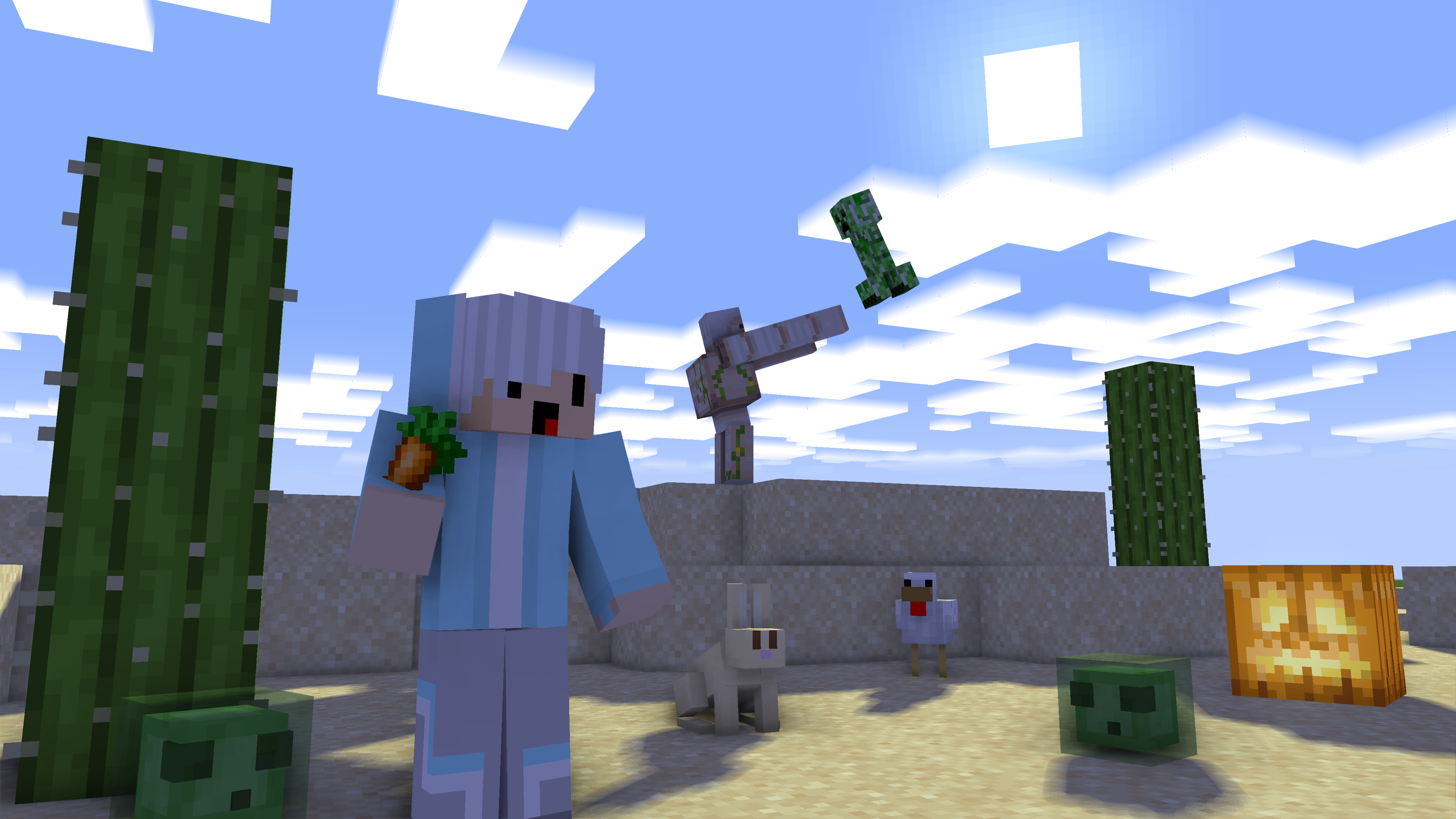 Ryzcle sedang berjalan di gurun pasir lalu Ia melihat ada Golem yang sedang melawan Creeper.