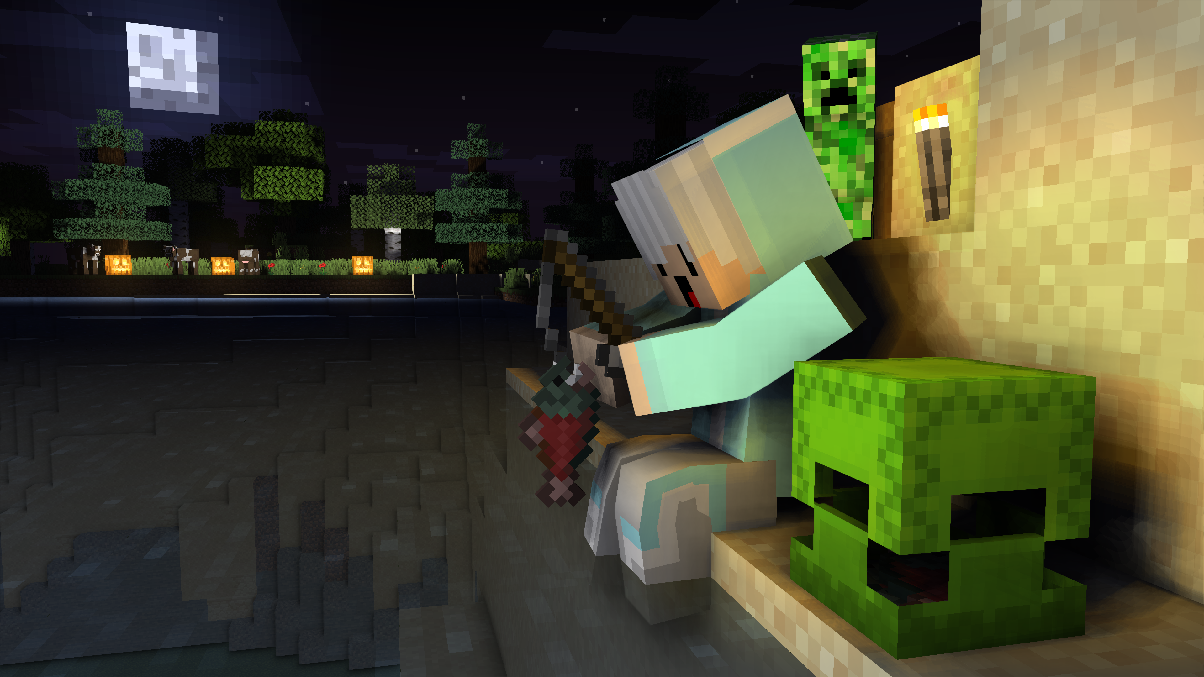 Ryzcle sedang berjalan di gurun pasir lalu Ia melihat ada Golem yang sedang melawan Creeper.